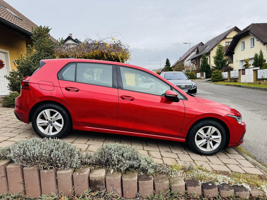 VW Golf VIII 1.5 TSI LIFE, 12/2020, 79.450 km, 96 kW (131 PS), V4, benzín, 6st. manuál, červená met., ACC, LED, PDC, digitální cockpit, navigace, výhřev volantu, kontrola jízdních pruhů atd.