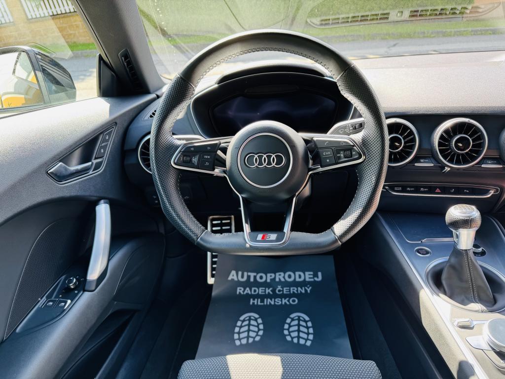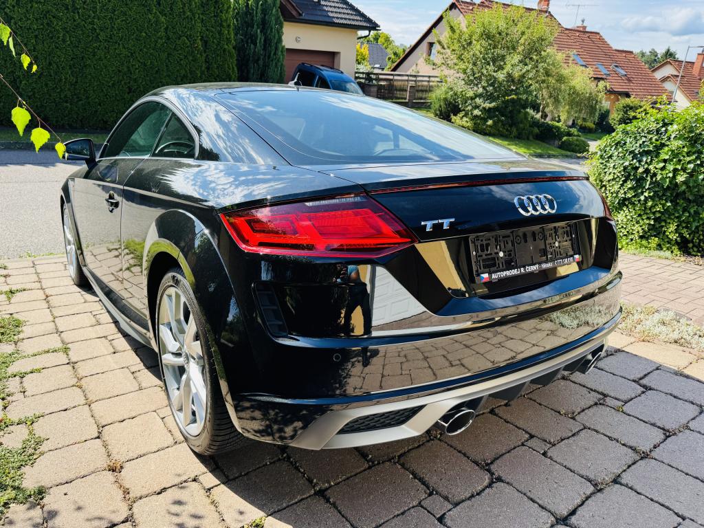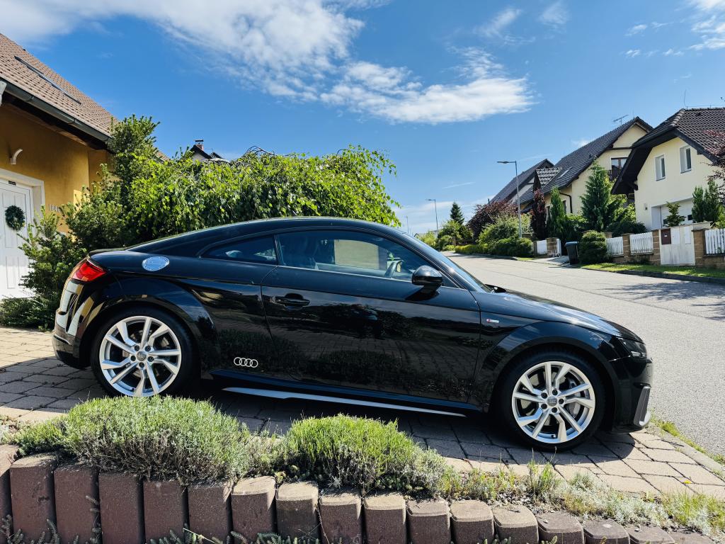 AUDI TT Coupe 2.0 TFSI 45 S-line, 5/2019, 55.900 km, 180 kW (245 PS), benzín, 6st. manuál, 4místné, černá met., digitální cockpit, navigace, LED, výhřev sedaček, 2-zónová klima, orig. Alukola Audi 18”, sklopné zadní křídlo atd.